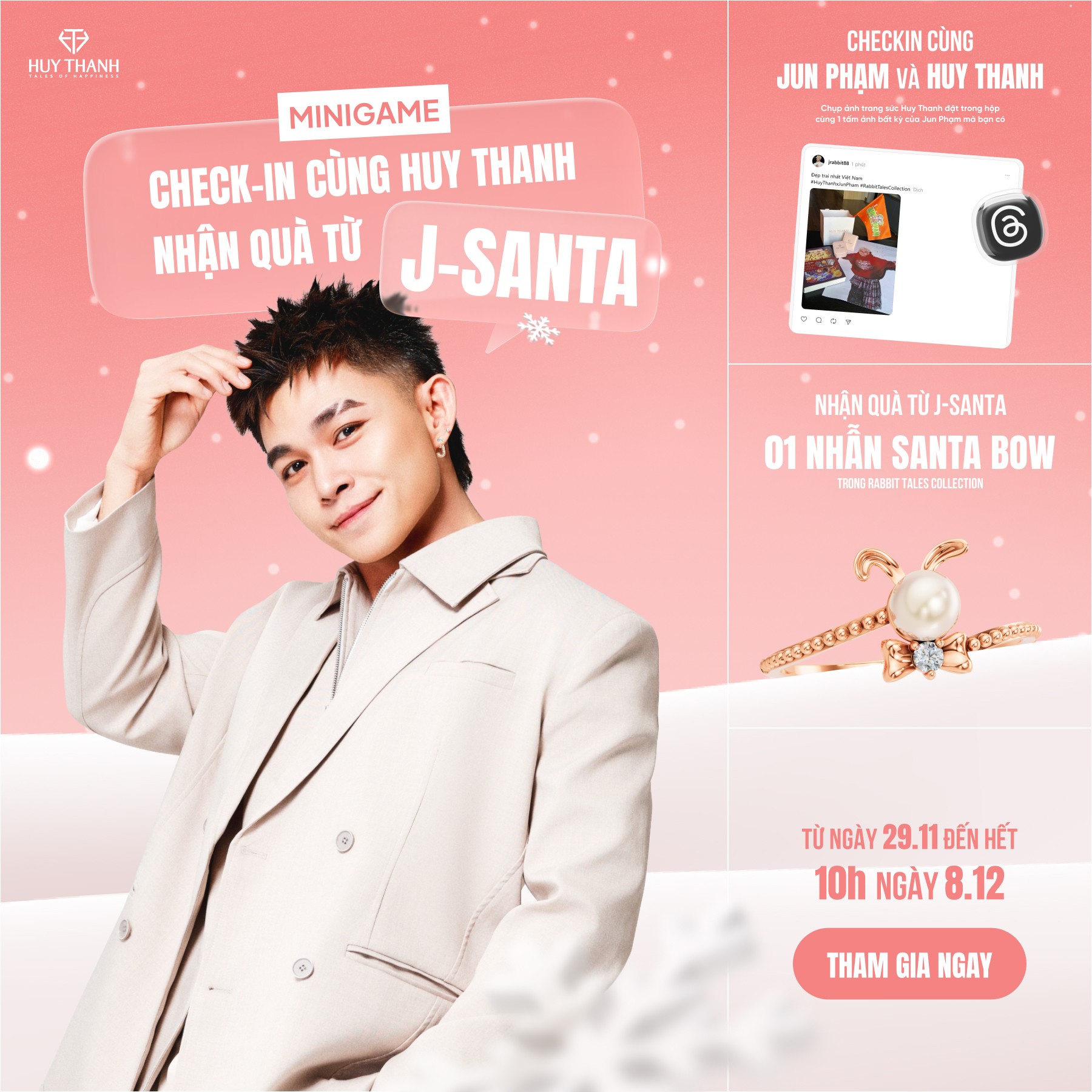 Hòa cùng không khí sôi động của mùa lễ hội cuối năm, Huy Thanh Jewelry giới thiệu bộ sưu tập Rabbit Tales với sự đồng hành của “anh trai” Jun Phạm trong vai trò gương mặt đại diện. Sự ấm áp, tinh tế và nguồn năng lượng tích cực của nam ca sĩ trở thành cầu nối, giúp truyền tải trọn vẹn thông điệp an lành mà thương hiệu muốn gửi gắm qua bộ sưu tập lần này.